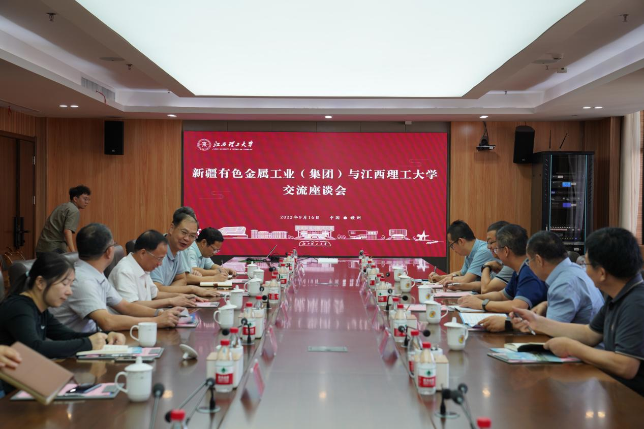 本网讯 9月16日上午,新疆有色金属工业(集团)有限责任公司党委委员、副总经理黄威一行来校洽谈校企合作事宜。校党委副书记、校长温和瑞,党委常委、副校长廖春发出席交流座谈会。相关部门负责人参加会议,会议由廖春发主持。