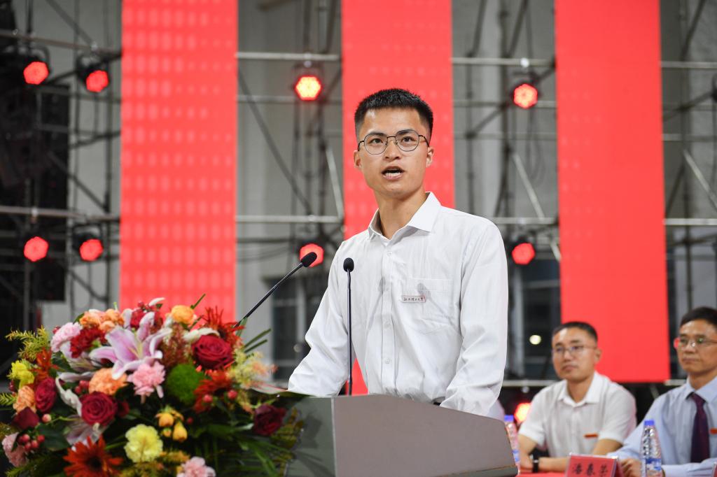 2023年全国大学生测绘学科创新创业智能大赛测绘技能竞赛一等奖、五好学生标兵获得者,土木与测绘工程学院测绘201班马齐天作为在校生代表在发言中传授给2023级新生们三点经验,并号召新生们以“时不我待”的紧迫感精进学业,以“舍我其谁”的责任感奋勇搏击,以“强国有我”的使命感创新创造,力争在金年会