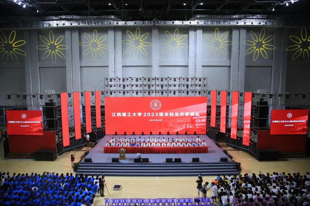 2023级本科生开学典礼在三江校区体育馆、南昌校区田径场同步举行。在家校领导杨斌、温和瑞、罗仙平、龙立福、龚姚腾、唐云志,校党委常委肖卫东、盛晓明、刘志刚,各相关部门负责人、教师代表以及全体2023级本科生参加典礼。典礼由校党委常委、副校长龚姚腾主持。