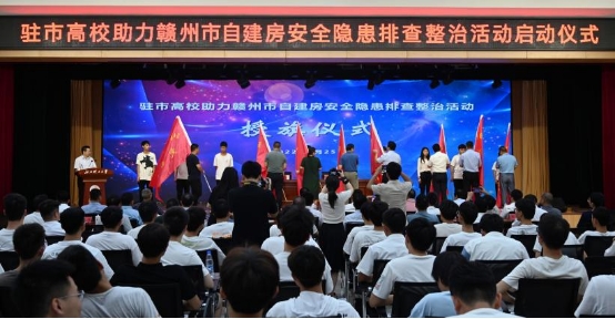 积极参与平安社会建设,牵头组织驻市高校助力赣州市自建房安全隐患排查整治活动启动仪式,与赣州市签署《赣州市自建房安全专项整治工作框架协议》,土木与测绘工程学院土木专业学生利用暑期完成赣州经开区、于都县、会昌县等地近7000栋自建房安全隐患排查工作。
