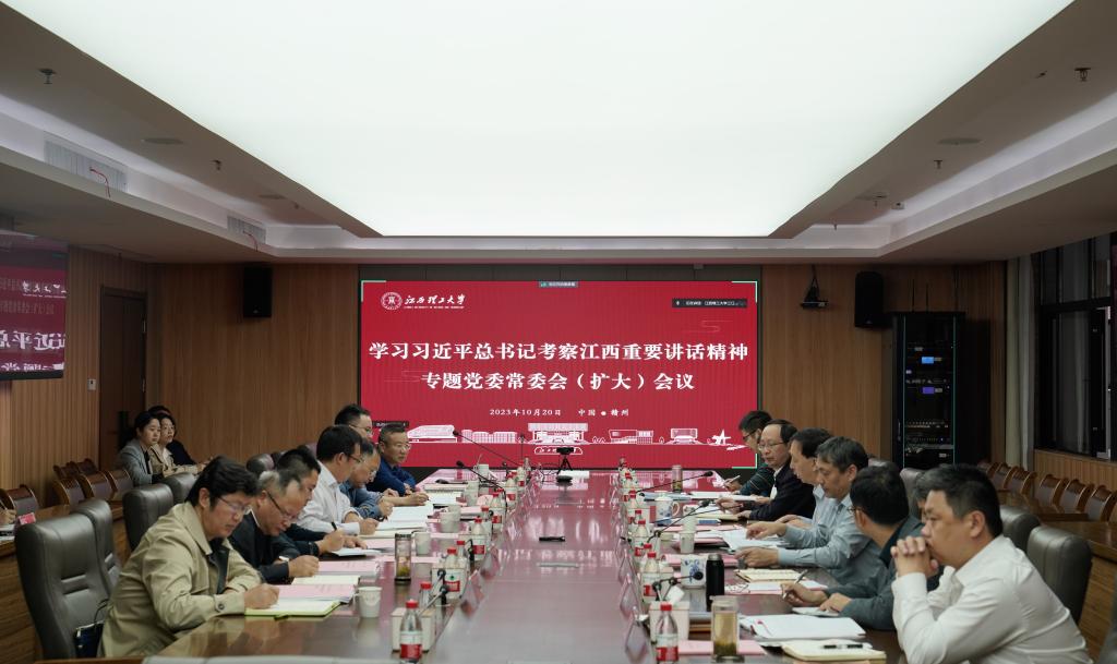 在濂溪楼2号会议室召开学习习近平总书记考察江西重要讲话精神专题党委常委会(扩大)会议。在家校领导、党委常委及相关职能部门负责人参加会议,会议由校党委书记杨斌主持。