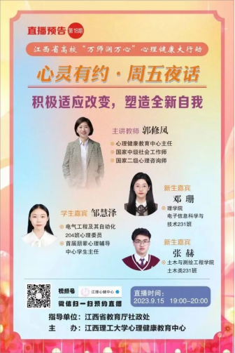 ”五级预警机制,开展各级各类讲座、培训130余场,约谈学生5725名。近5年共接待个体心理咨询4607人次,开展团体心理辅导360人次,QQ、电话等线上咨询共800余人次。以“3·25”“5·25”为契机,举办创意心理活动120余场,2023年获得全国高校心理情景剧优秀奖、全国心理微电影(心理短视频)高校优秀作品奖,2022年获江西省高校心理微电影大赛一等奖。