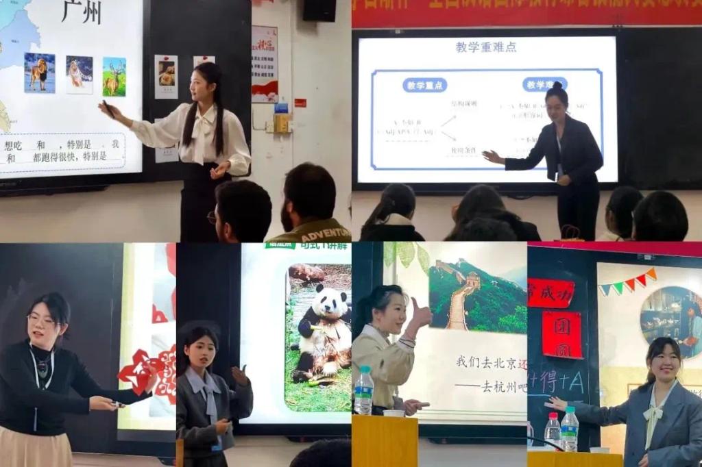 本次比赛共有32支本科生参赛队、16支研究生参赛队在“汉语国际教育信息化平台”上进行汉语国际教育综合理论的考核。与此同时,各参赛队伍在红旗校区主教楼进行了短视频展示、教学展示(含说课、讲课)和中英双语答辩。比赛过程中,参赛选手们熟练运用各种教学方法,借助PPT和板书等教学辅助手段,将自己的教学内容进行了详细的解说,呈现了一场场精彩生动的模拟汉语课堂。