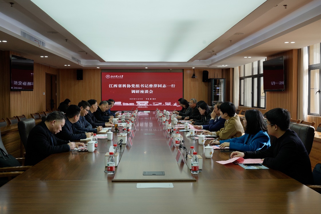 考察调研科技人才工作,并调度和指导话剧《杨衍忠》的创排工作。校党委书记杨斌热情接见了曾萍一行,并举行座谈交流会。江西省科协宣传调研部部长张全市,赣州市科协党组书记、主席钟玉良,副主席肖维湘等陪同调研。校党委常委、副校长唐云志,科学技术处、校团委等部门负责人以及金年会体育