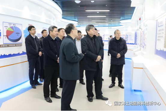 签约仪式前,杨仁树一行莅临国家稀土功能材料创新中心调研,表示双方将在稀土产业人才培养、科研攻关、成果转移转化等方面进一步创新校企合作模式,共同助力国家稀土产业高质量发展。