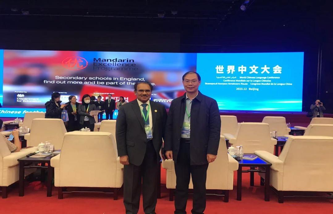 在巴基斯坦旁遮普大学设立的孔子学院中方院长蔡进宝、外方院长Shafiq-ur-Rehman,旁遮普大金年会