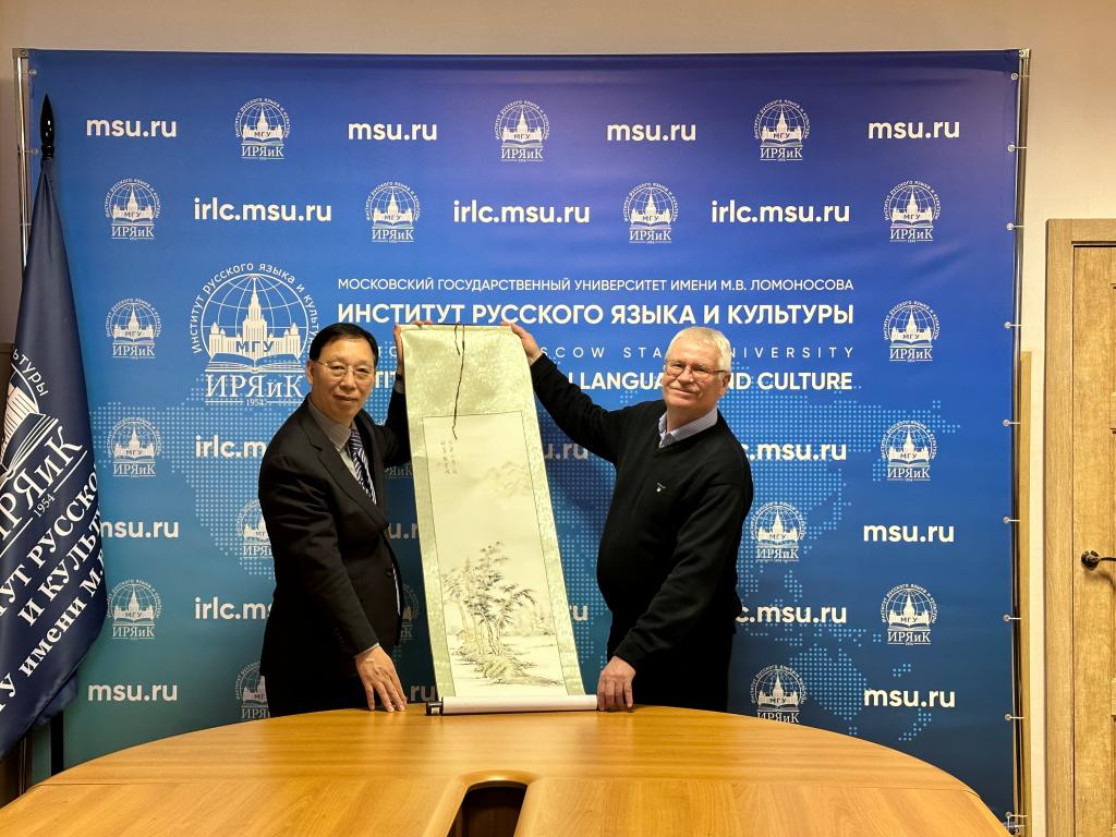代表团赴莫斯科国立大学与副校长尤里•马泽毅座谈,签署合作协议,就师生互派互访、学历提升等项目进行了探讨。代表团看望了在莫斯科国立大学留学的金年会体育