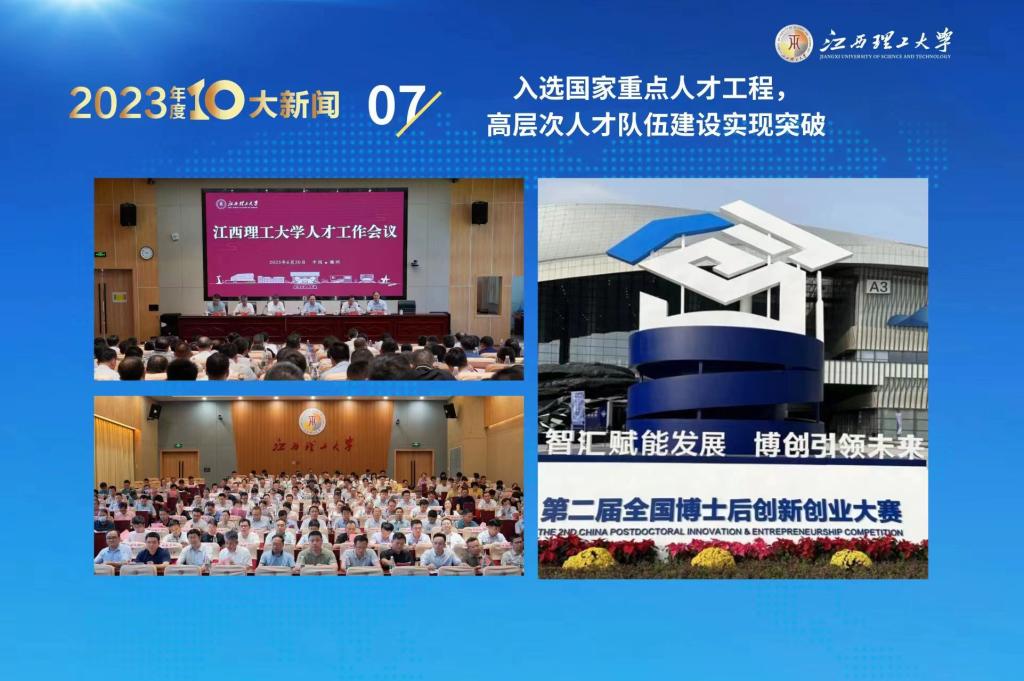 高层次人才队伍建设实现历史突破,申报获批国家重点人才1名,新增国务院特殊津贴专家1名,入选省“双千计划”“赣鄱俊才计划”等省部级人才43人次,新增博士学位教师78人,位居全省前列;新增博士后进站19人,组织参加第二届全国博士后创业大赛,以1个铜奖2个优胜奖的优异成绩位列全省第一。