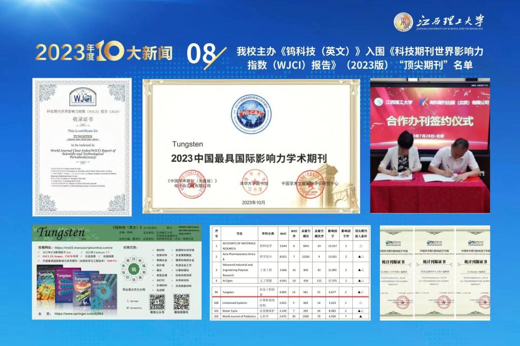 主办的《钨科技(英文)》入围《科技期刊世界影响力指数(WJCI)报告》(2023版)“顶尖期刊”名单