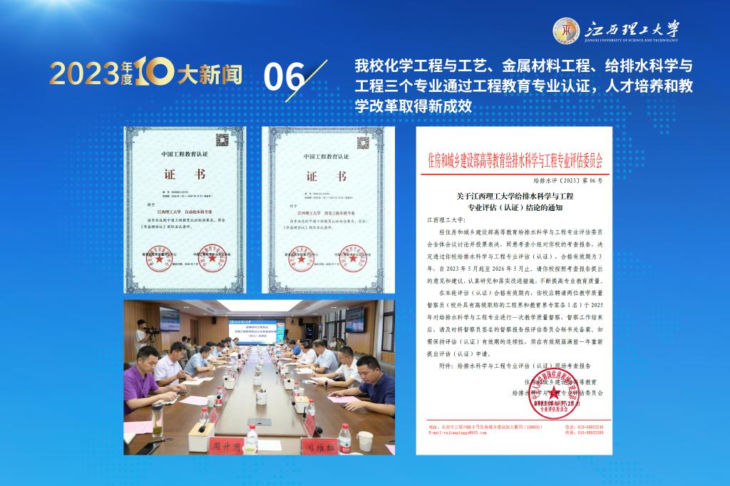 化学工程与工艺、金属材料工程、给排水科学与工程三个专业顺利通过工程教育专业认证,至此,金年会体育