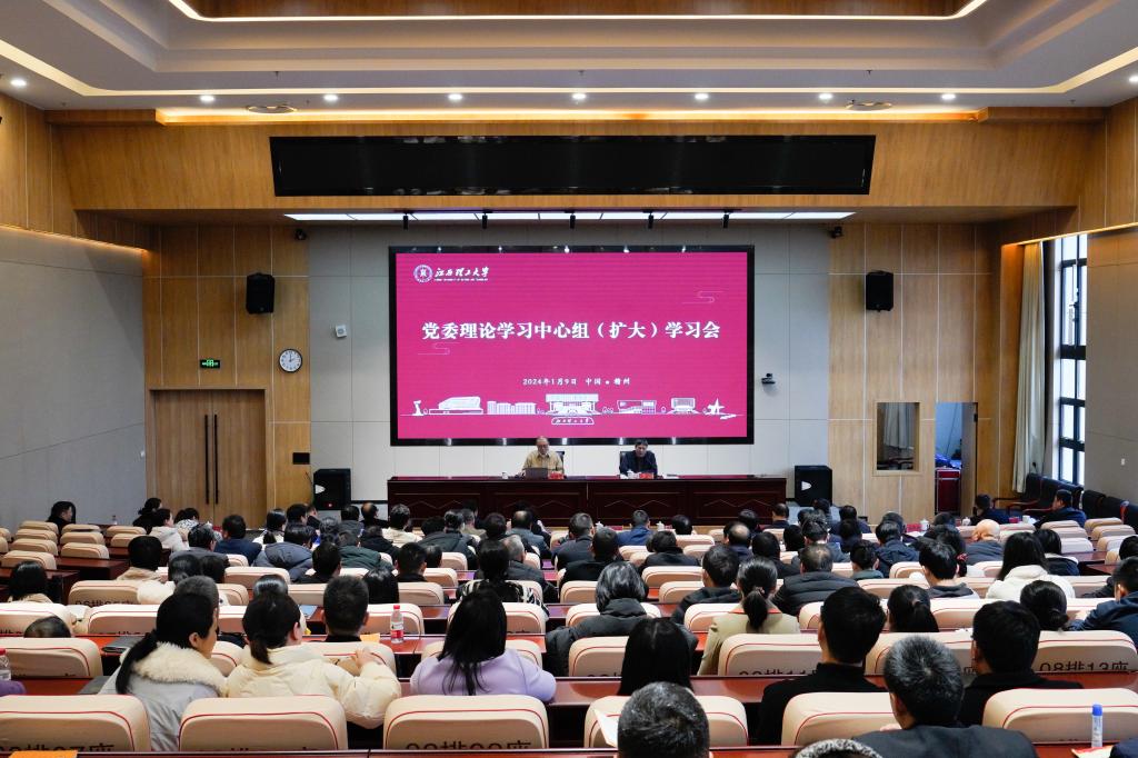 在三江校区启航会议中心1号会议厅召开党委理论学习中心组(扩大)学习会。江西省公安厅国保总队政委胡频庚受邀作题为《维护高校政治安全》的专题辅导报告。全体在家校领导、校党委常委、金年会