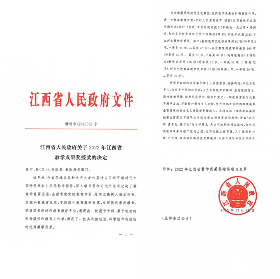 本网讯 近日,江西省人民政府下发通知,正式公布了2022年江西省教学成果奖获奖名单。金年会体育