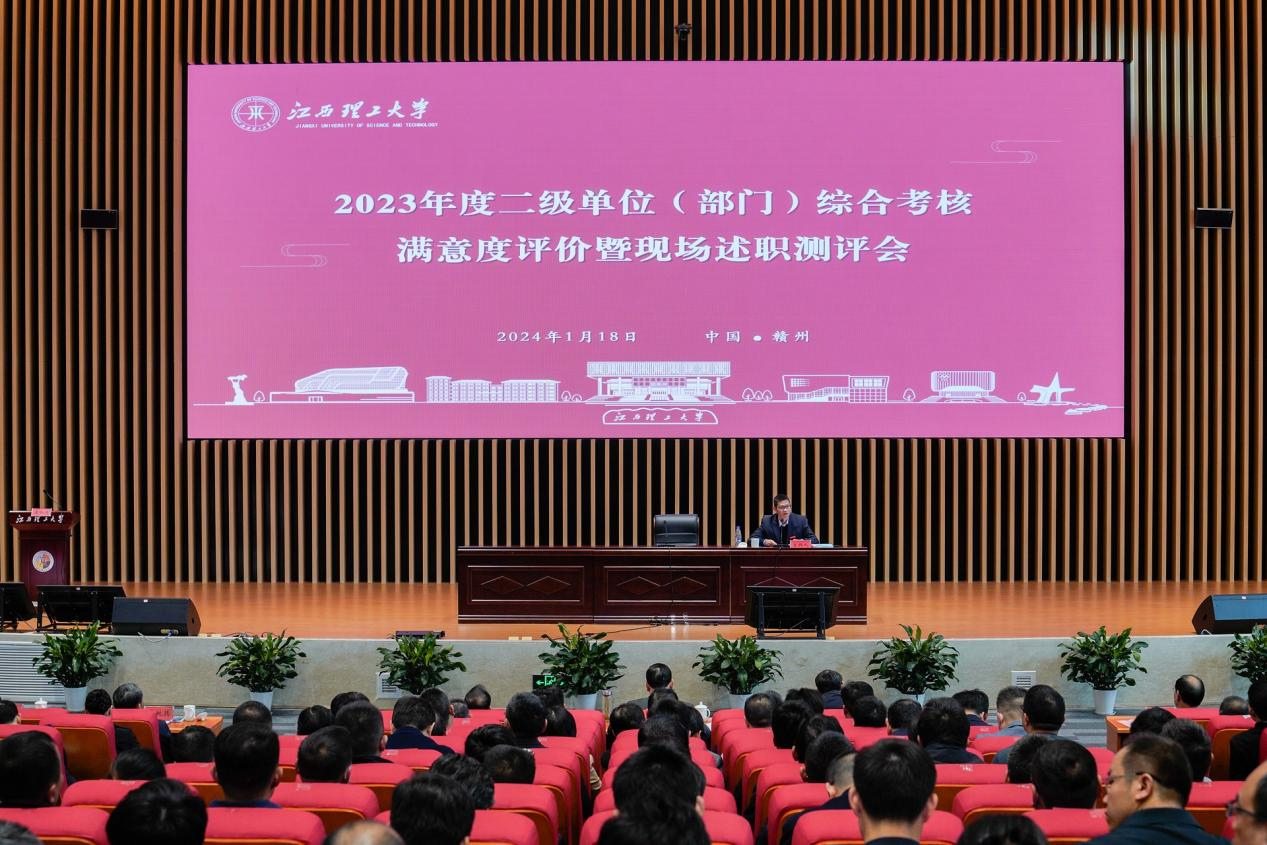 2023年度二级单位(部门)综合考核现场述职测评会在三江校区志远会议中心一楼1号会议厅召开。测评会分为二级党组织书记抓基层党建述职测评会和满意度评价暨现场述职测评会。