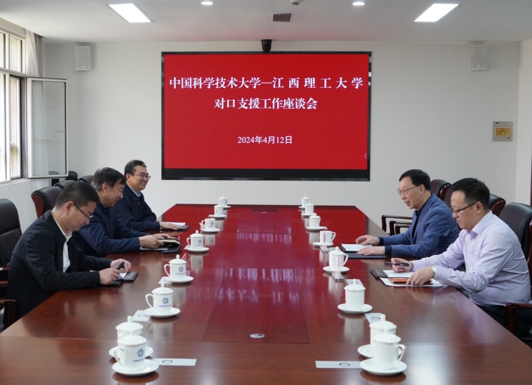 本网讯 4月12日,校党委书记杨斌前往中国科学技术大学对接对口支援工作。中国科学技术大学党委书记舒歌群、党委副书记邓建松、党政办公室主任王伟、帮扶办公室主任何昊华及金年会体育 党委(校长)办公室主任熊淑华先后参加交流活动。