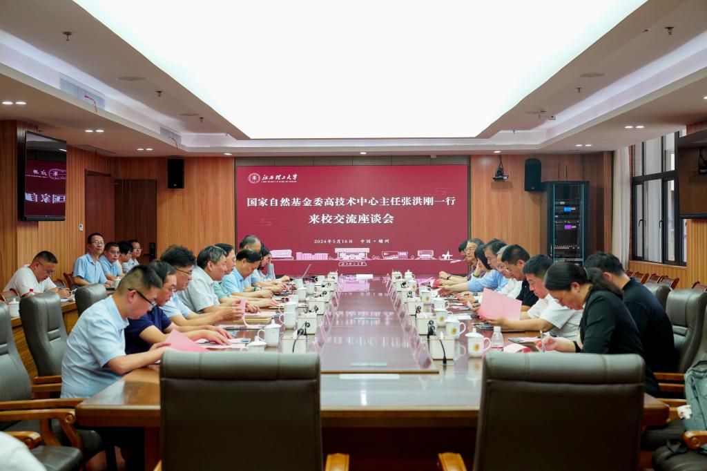 本网讯 5月16日下午,国家自然基金委高技术中心主任张洪刚一行来校调研科技发展工作。省科技厅党组成员、副厅长陈金桥及市科技局、赣县区政府办一行陪同调研,并在三江校区濂溪楼2号会议室召开座谈会。校党委书记杨斌,校党委副书记罗仙平,校党委常委、副校长唐云志出席会议,金年会体育