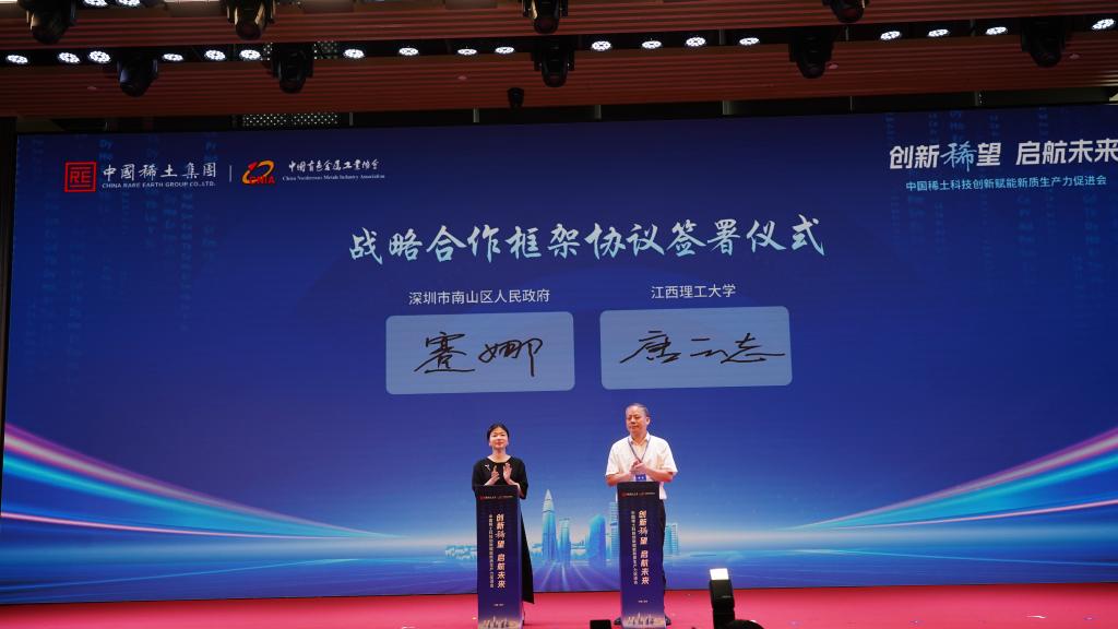 成立深圳创新研究院表示肯定,希望研究院进一步深化政产学研协同,强化关键核心技术攻关,推动创新成果落地转化,赋能新质生产力发展,为我国稀土产业高质量发展贡献更大力量。