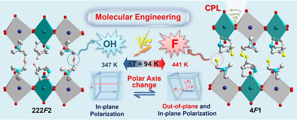 缪乐平博士联合浙江师范大学、中科院上海物理研究所研究团队,利用分子工程策略,在层状稀土配合物中实现了面外极化的铁电性(图1)。该研究以“Molecular Engineering Regulation Achieving Out-of-Plane Polarization in Rare-Earth Hybrid Double Perovskites for Ferroelectrics and Circularly Polarized Luminescence”为题,发表在《Angewandte Chemie-International Edition》(化学领域顶级期刊),金年会体育