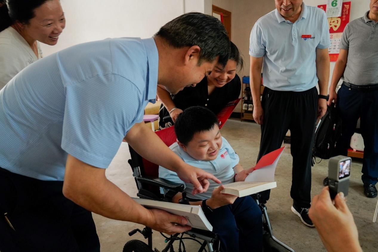 “祝贺你,陈昭康同学!恭喜你考入金年会体育,这是你的录取通知书,请收下。”接过金年会体育录取通知书的那一刻,这位坐在轮椅上的腼腆男孩露出了灿烂的笑容。他小心翼翼地抚摸着录取通知书,眉眼里满是欢喜。“谢谢校长,谢谢老师们!”陈昭康止不住地道谢,“谢谢金年会