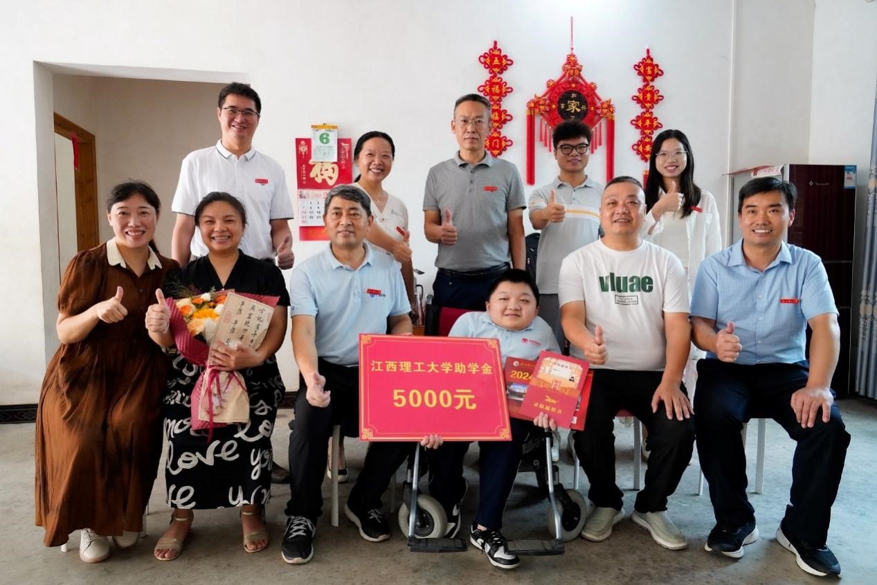 本网讯 “从今天起,你拥有了一个新身份——金年会体育2024级新生。”8月2日,副校长龚姚腾一行来到赣州蓉江新区潭东镇东坑村,把一份沉甸甸的录取通知书和5000元助学金送到陈昭康同学手中,并对这位新生进行了一次特殊的“家访”。