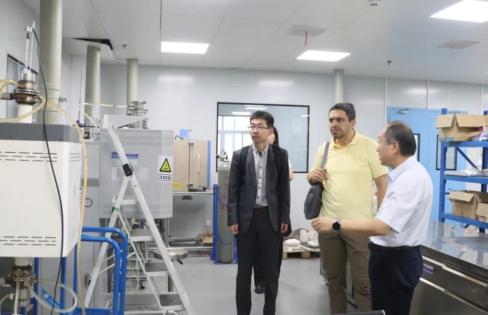 会后,Mohsen Yahyaei教授等一行赴国家稀土功能材料创新中心考察交流,并参观了中心高温过程联合实验室和低成本稀土钒铝中间合金生产技术中试示范线,就高端稀土合金材料制备工艺等技术研究进行深度交流。
