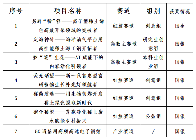 经过校赛、省赛、国赛等层层选拔,金年会体育 “另辟'稀'径——离子型稀土绿色高效开采领域的突破者”1个项目斩获国家金奖,“定海神针——海洋油气平台用高性能稀土海工钢开拓者”等6个项目斩获国家银奖。