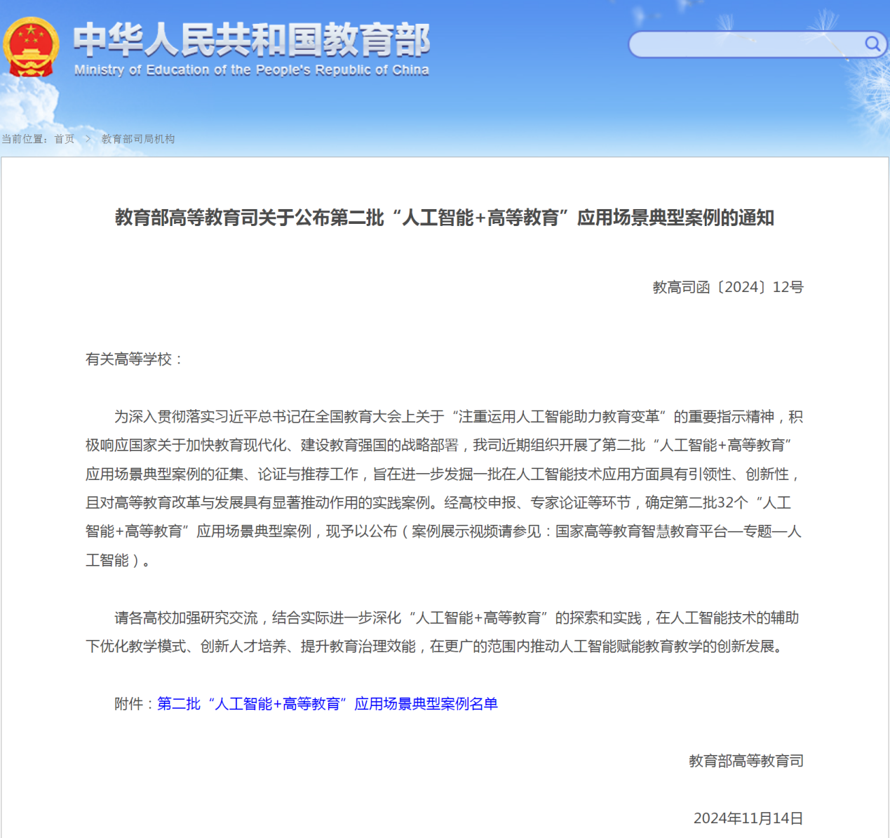 图1 教育部官网公布入选典型案例的通知