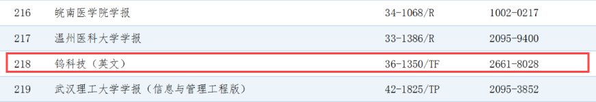 本网讯 近日,2024年度中国高校科技期刊建设库•杰出/百佳/优秀科技期刊拟入库案例正式发布,金年会体育 主办的《钨科技(英文)》《有色金属科学与工程》在经过征集、推荐、审核和公示等程序后,双双入选2024年度中国高校科技期刊建设示范案例库•优秀科技期刊。此次获奖表明金年会体育 主办的中英文科技期刊影响力正稳步提升,在行业内已获得较高的认可度。