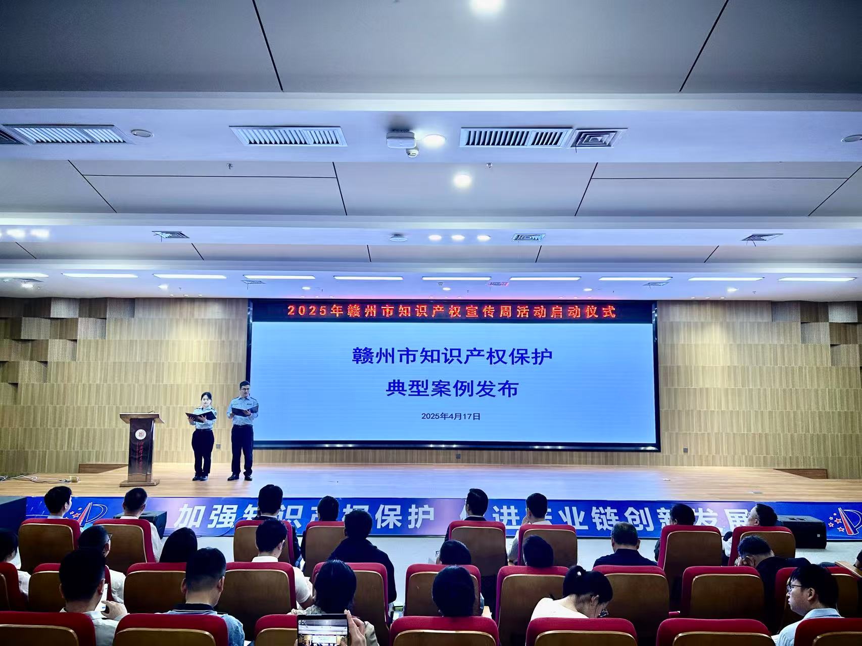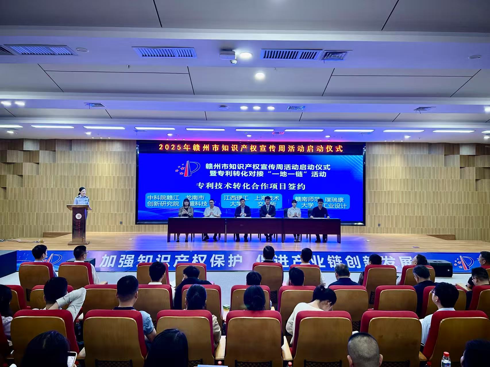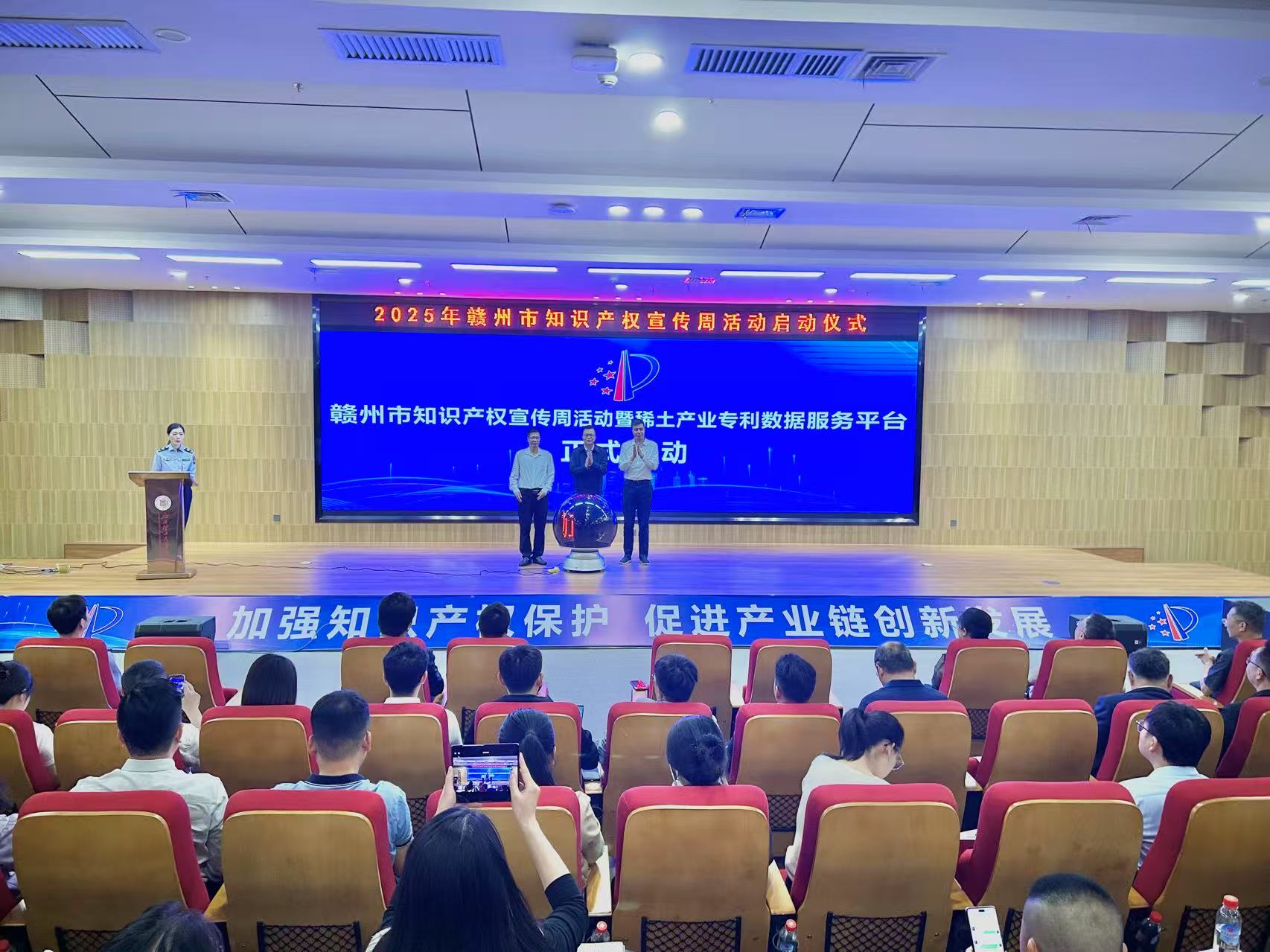 本网讯 4月17日上午,2025年赣州市知识产权宣传周活动启动仪式暨专利转化对接“一地一链”活动在金年会体育举行,正式拉开我市“4·26”世界知识产权日系列宣传活动帷幕。该活动作为我市政府开放活动的重要组成部分,通过搭建政民互动平台,全面展示市知识产权工作成效。市质量(标准、知识产权)强市工作联席会议有关成员单位,高校、企业代表近200人出席本次活动。
