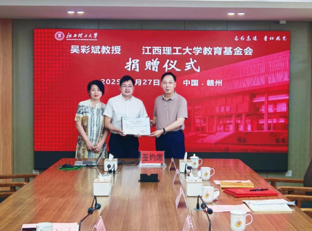 捐赠仪式上,杨斌向吴彩斌夫妇颁发了捐赠证书,并接受捐赠支票。