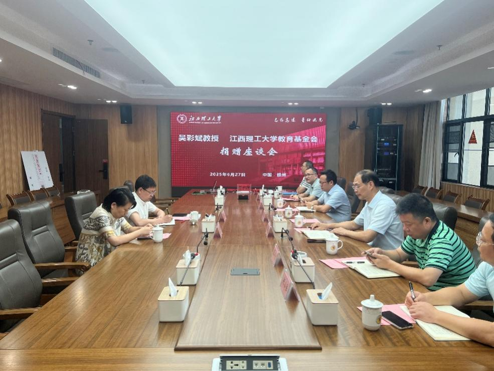 在三江校区濂溪楼1号会议室举行吴彩斌教授捐赠座谈会。校党委书记杨斌,党委常委、副校长廖春发及相关部门负责人参加座谈。座谈会由校国内合作促进中心主任、教育基金会副理事长兼秘书长许洪胤主持。