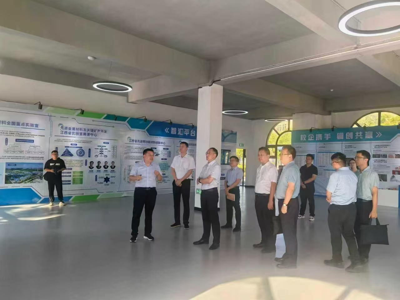 刘祖文先后参观了研究院展厅、研发中心和中试车间,实地察看了采矿、选矿、冶炼、环境、正负极材料实验室、中试车间及党建活动室。在参观过程中,他边走边问,详细了解了展厅布局、实验室功能定位、科研项目进展、人才培养及成果转化等情况,深入探究了研究院在推动产业链上下游协同创新方面所发挥的重要作用。