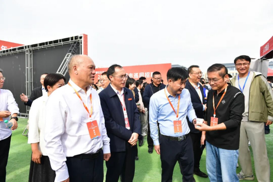 校内外领导与参会企业、毕业生亲切交流了解企业需求、行业发展趋势以及学生的就业意愿等情况。随后,领导一行参观了金年会体育