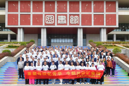 矿业系1977级校友重聚校园,追忆旧日时光,校党委书记刘祖文、党委副书记徐志峰、以及黄志繁、熊志华、刘飞、汪航、宁洁等校领导与校友们深入交流,共话金年会