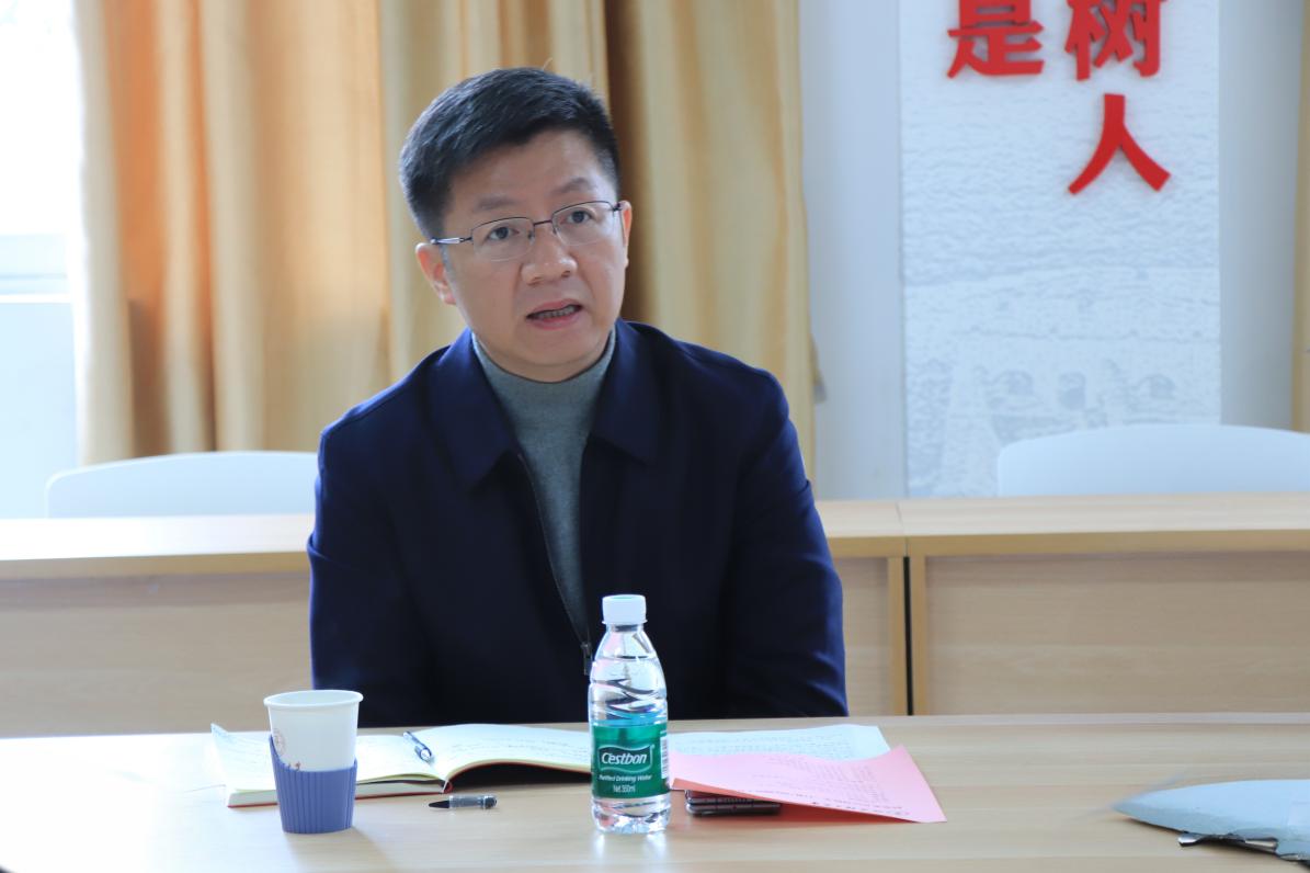 本网讯 为深入学习贯彻党的二十届四中全会精神,落实立德树人根本任务,提高思政课建设质量,11月19日,校党委书记刘祖文、党委副书记徐志峰来到马克思主义学院,围绕学科建设、思政课改革创新、人才队伍建设等重点工作开展调研并召开座谈会。马克思主义学院院长邓显超、党委副书记黄东明、副院长王经北与严九发、院长助理曾过生、各教研室主任及党支部书记代表参加座谈。会议由邓显超主持。
