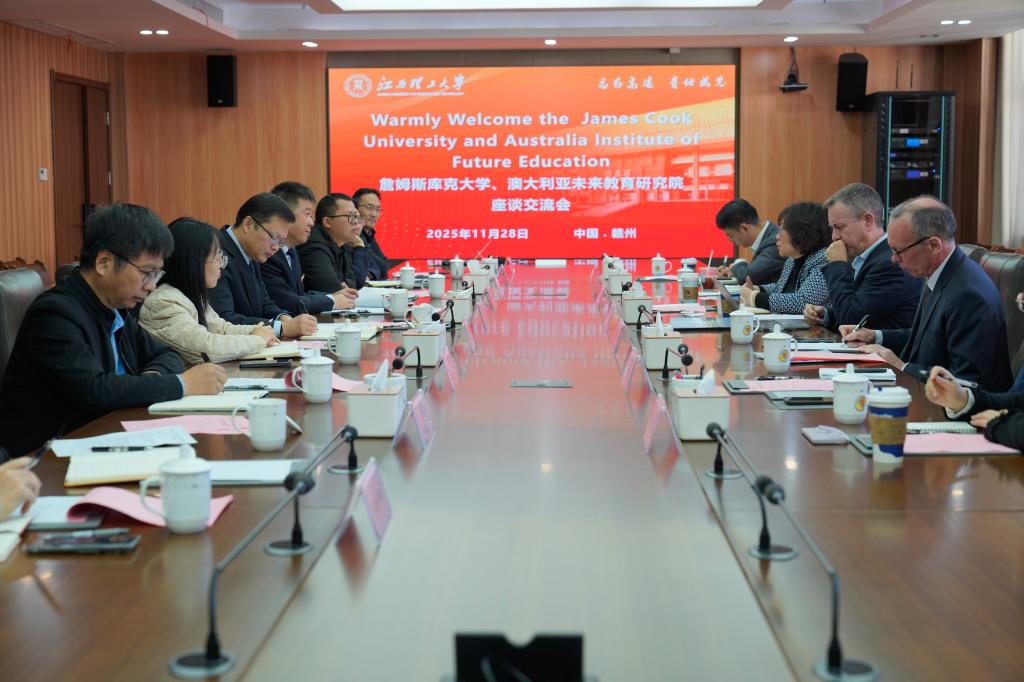 本网讯 11月28日,澳大利亚詹姆斯·库克大学代理副校长Ron White教授率代表团来访。双方在三江校区(东园)濂溪楼举行座谈,围绕中外合作办学机构申报及未来合作前景等议题展开深入交流。校党委常委、副校长熊志华出席会议。会议由孔子学院中方院长兼国际交流与合作中心主任蔡进宝主持。