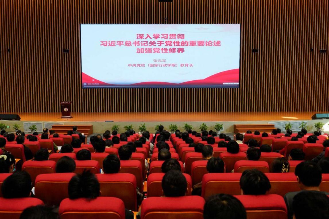 课上,张忠军从“党性的基本含义”“党性的新时代要求”“党性修养的意义”以及“党性修养的路径”四个方面,深入解读了习近平总书记关于党性的重要论述,系统阐释了什么是中国共产党人的党性、为什么要加强党性修养、怎样加强党性修养等一系列重大问题。辅导报告站位高远、系统全面、内涵丰富,为全校党员师生深刻理解习近平总书记关于党性的重要论述的核心要义和精神实质,毫不松懈加强党性修养,不断将党性内化于心、外化于行起到重要作用。