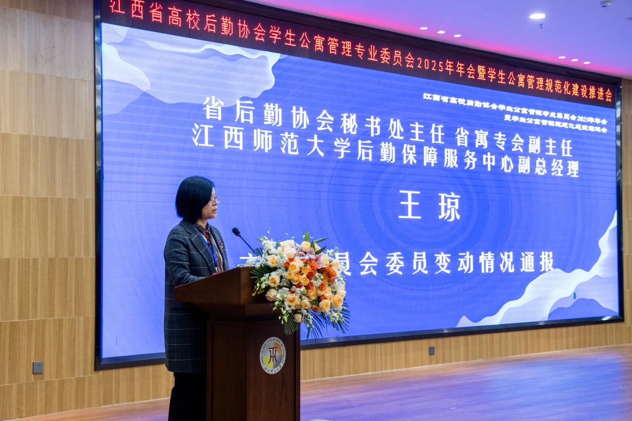 会上,王琼就江西省高校后勤协会学生公寓管理专业委员会委员调整情况作了通报。
