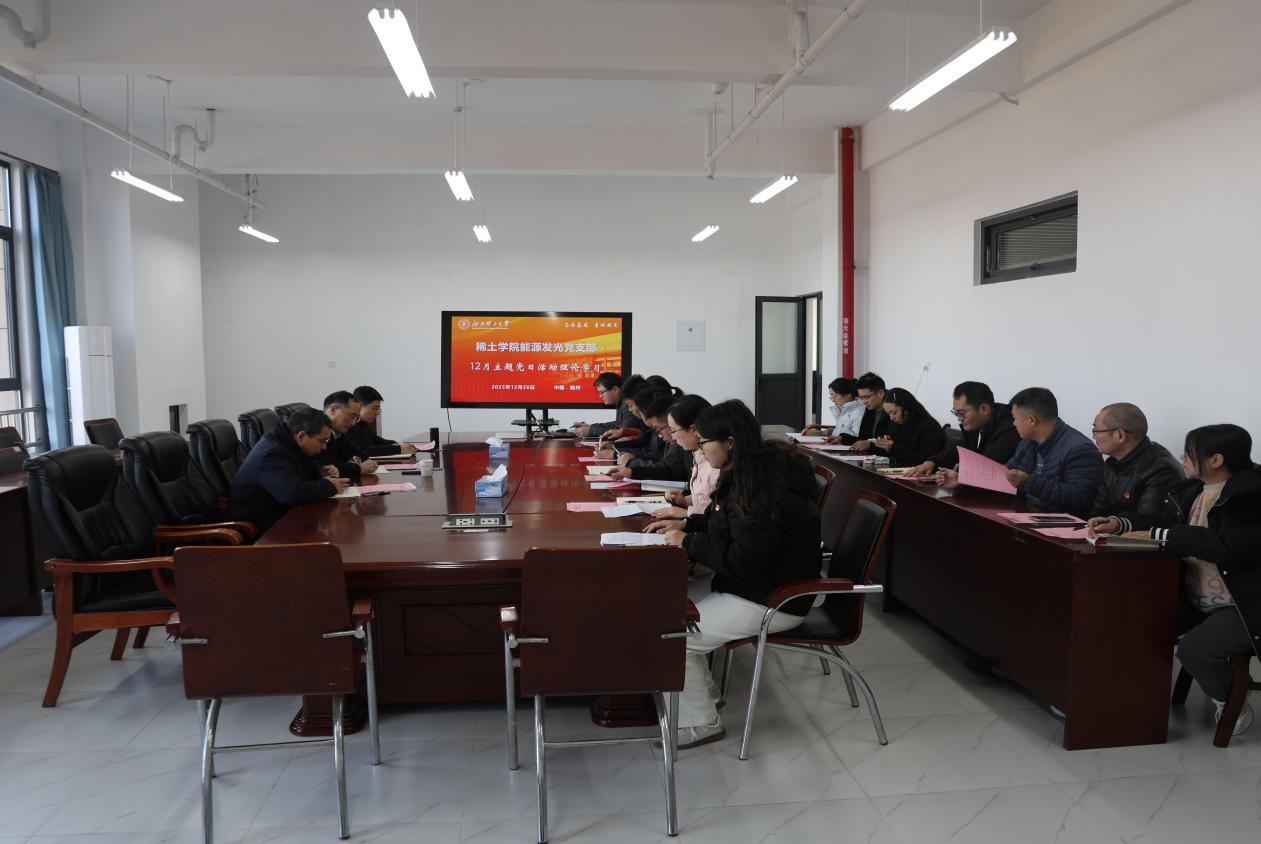 本网讯 12月26日,稀土学院能源发光党支部在三江校区(西园)霞光楼308举办以“强党性 促担当 重实干 建新功”为主题的党日活动。校党委书记刘祖文,副校长汪航,稀土学院党总支副书记李振出席本次活动。活动由党支部书记刘松彬主持。