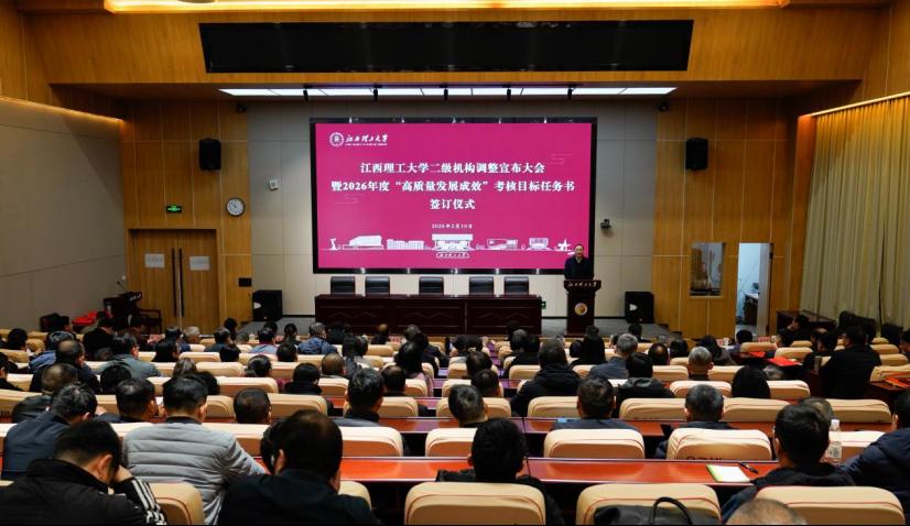 本网讯 2月10日,金年会体育二级机构调整宣布大会暨2026年度“高质量发展成效”考核目标任务书签订仪式在三江校区启航会议中心举行。校党委书记刘祖文,中国工程院院士、校长葛世荣出席会议并讲话。全体在家校领导、党委常委,全校中层干部参加会议,见证签订仪式。