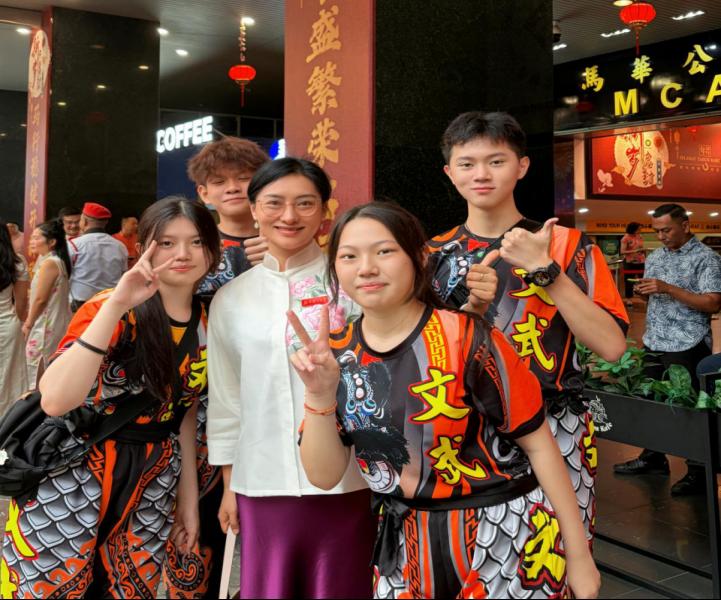 此外,杨婷老师还与参与此次新春团拜的舞狮青年进行了交流,询问他们华文学习的途径和困难,了解马来西亚华裔青少年的真实心声。