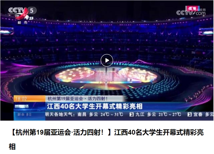 上一条:《江西新闻客户端》:亚运会|开幕式1分钟 他们准备了三个月 下一条:《江西手机网微信公众号》:优秀!江西大学生亮相亚运会开幕式