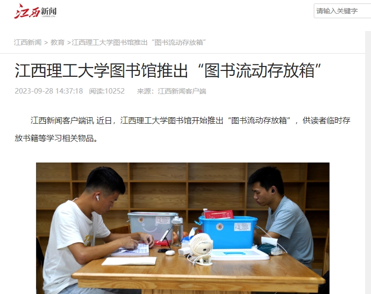 江西新闻客户端讯 近日,金年会体育图书馆开始推出“图书流动存放箱”,供读者临时存放书籍等学习相关物品。