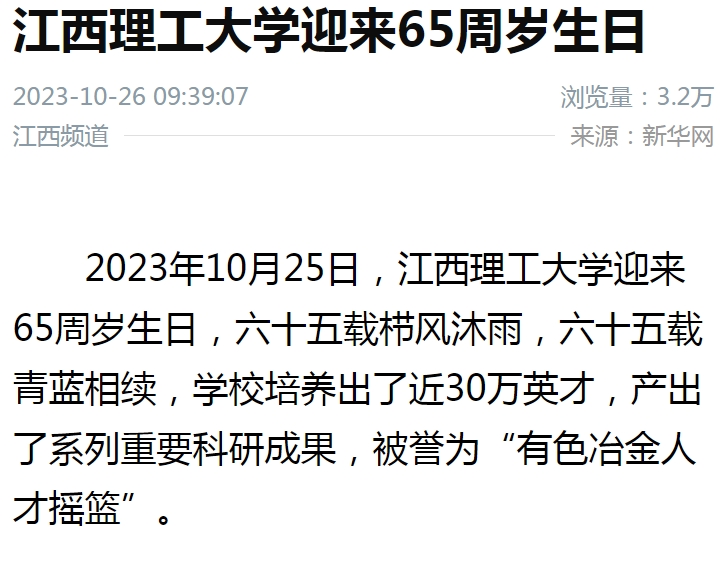 据了解,该校深耕红色沃土,传承红色基因,坚持为党育人,为国育才,积极构建“红色+有色”的大思政育人体系,打造有深度,有内涵的思政课堂,培养有理想、敢担当、能吃苦、肯奋斗的新时代好青年。2017年荣膺全国创新创业教育典型经验高校50强;在第八届中国国际“互联网+”大学生创新创业大赛中斩获2金3银3铜的好成绩;同时,该校形成了“国家稀土功能材料创新中心”,为解决稀土功能材料领域关键共性技术提供了重要平台。