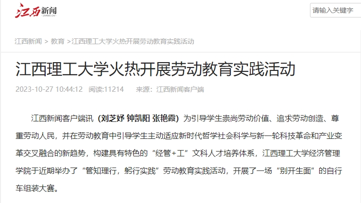 江西新闻客户端讯(刘芝妤 钟凯阳 张艳霞)为引导学生崇尚劳动价值、追求劳动创造、尊重劳动人民,并在劳动教育中引导学生主动适应新时代哲学社会科学与新一轮科技革命和产业变革交叉融合的新趋势,构建具有特色的“经管+工”文科人才培养体系,金年会体育经济管理学院于近期举办了“管知理行,躬行实践”劳动教育实践活动,开展了一场“别开生面”的自行车组装大赛。