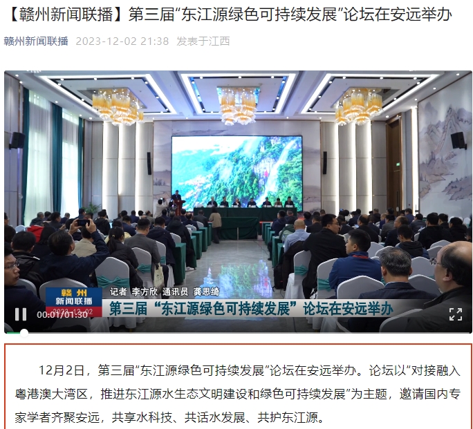 12月2日,第三届“东江源绿色可持续发展”论坛在安远举办。论坛以“对接融入粤港澳大湾区,推进东江源水生态文明建设和绿色可持续发展”为主题,邀请国内专家学者齐聚安远,共享水科技、共话水发展、共护东江源。