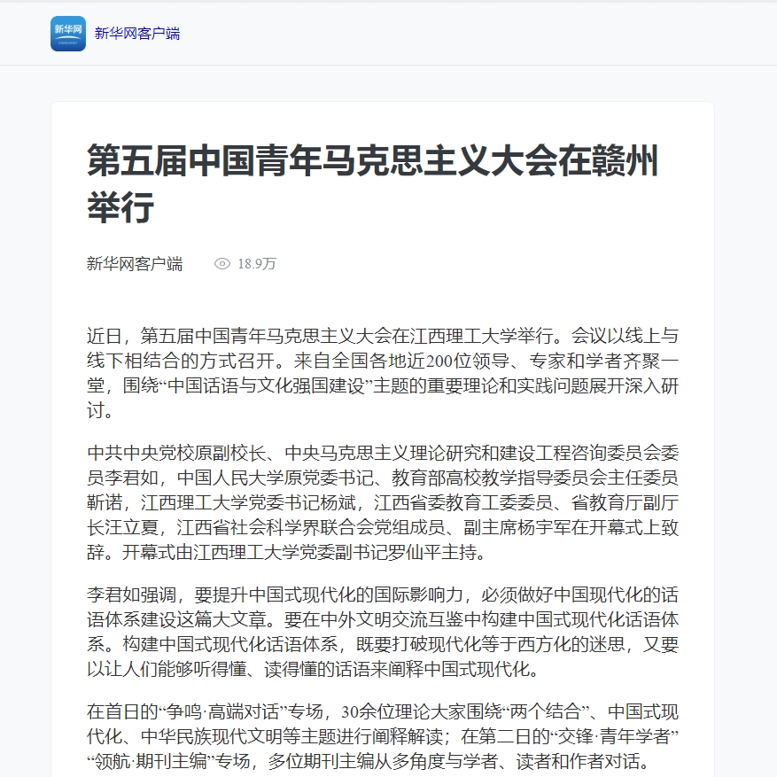 近日,第五届中国青年马克思主义大会在金年会体育举行。会议以线上与线下相结合的方式召开。来自全国各地近200位领导、专家和学者齐聚一堂,围绕“中国话语与文化强国建设”主题的重要理论和实践问题展开深入研讨。