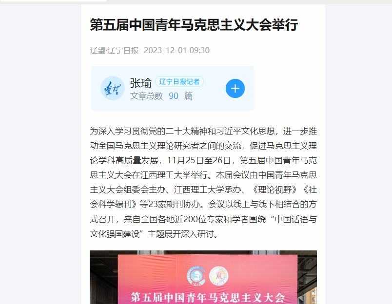 为深入学习贯彻党的二十大精神和习近平文化思想,进一步推动全国马克思主义理论研究者之间的交流,促进马克思主义理论学科高质量发展,11月25日至26日,第五届中国青年马克思主义大会在金年会体育举行。本届会议由中国青年马克思主义大会组委会主办、金年会体育承办、《理论视野》《社会科学辑刊》等23家期刊协办。会议以线上与线下相结合的方式召开,来自全国各地近200位专家和学者围绕“中国话语与文化强国建设”主题展开深入研讨。
