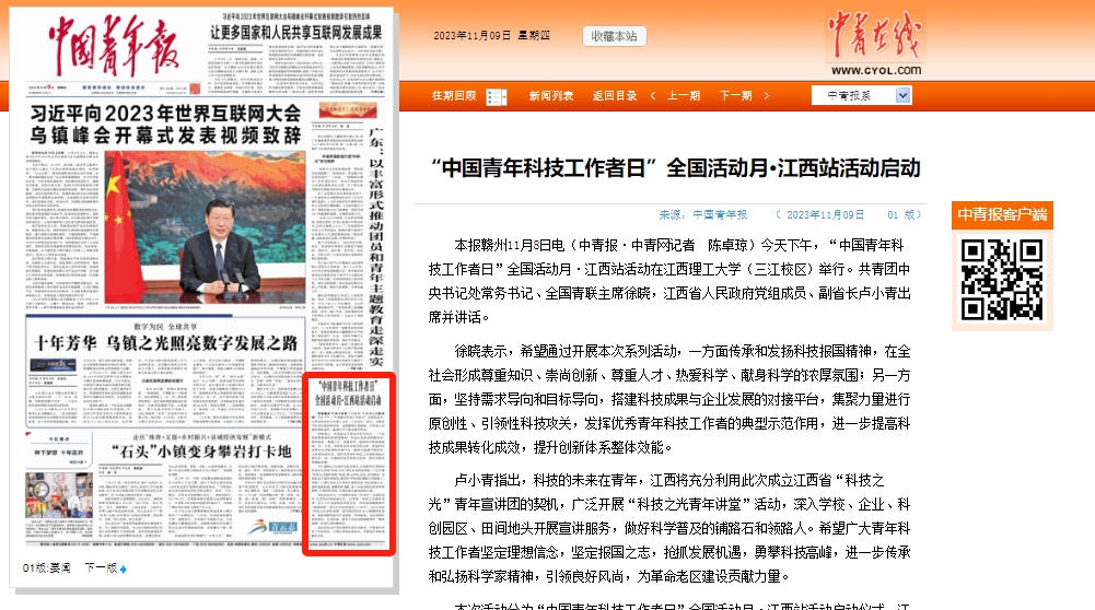 此次活动由中华全国青年联合会指导,中国青年科技工作者协会、中国光华科技基金会、共青团江西省委联合主办。