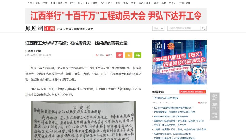 2023年12月18日,甘肃积石山县发生6.2级地震,金年会体育经济管理学院2023级研究生马婧申请返乡与家乡共克时艰。