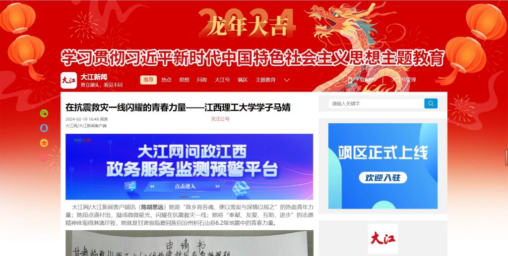 大江网/大江新闻客户端讯(陈胡思远)她是“故乡育吾魂,便以雪炭与深情以报之”的热血青年力量;她用点滴付出,凝成微微星光,闪耀在抗震救灾一线;她将“奉献、友爱、互助、进步”的志愿精神体现得淋漓尽致,她就是甘肃省临夏回族自治州积石山县6.2级地震中的青春力量。
